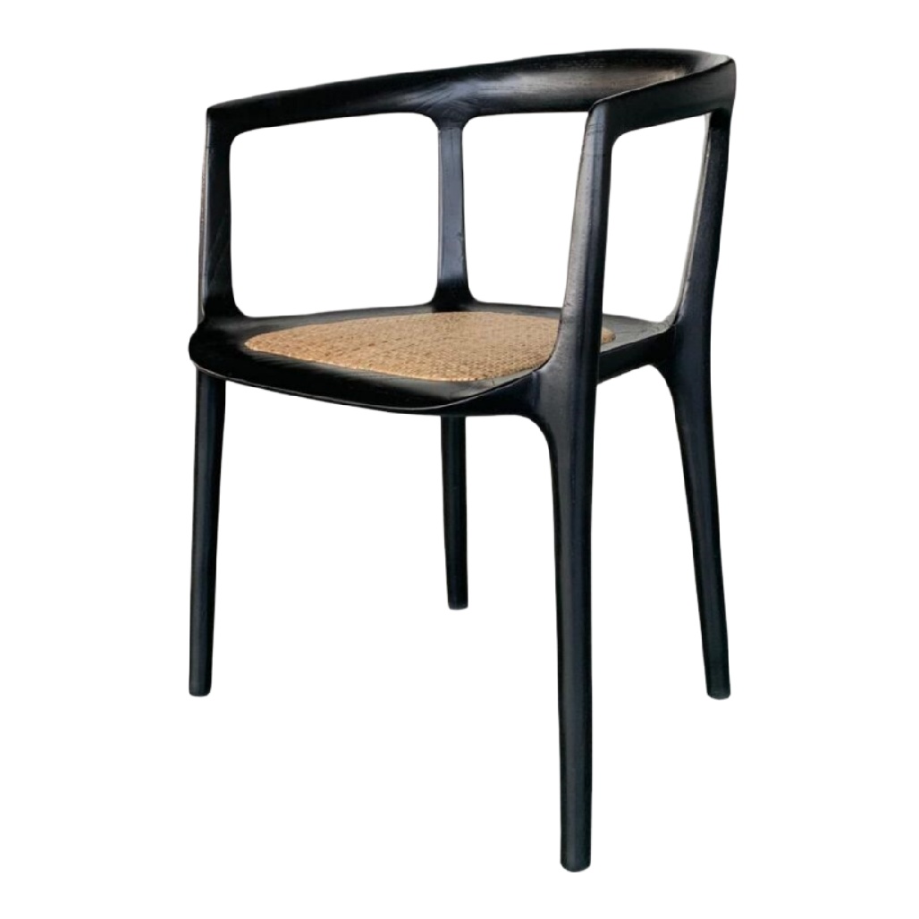 Chaise en bois noir avec assise en cannage.