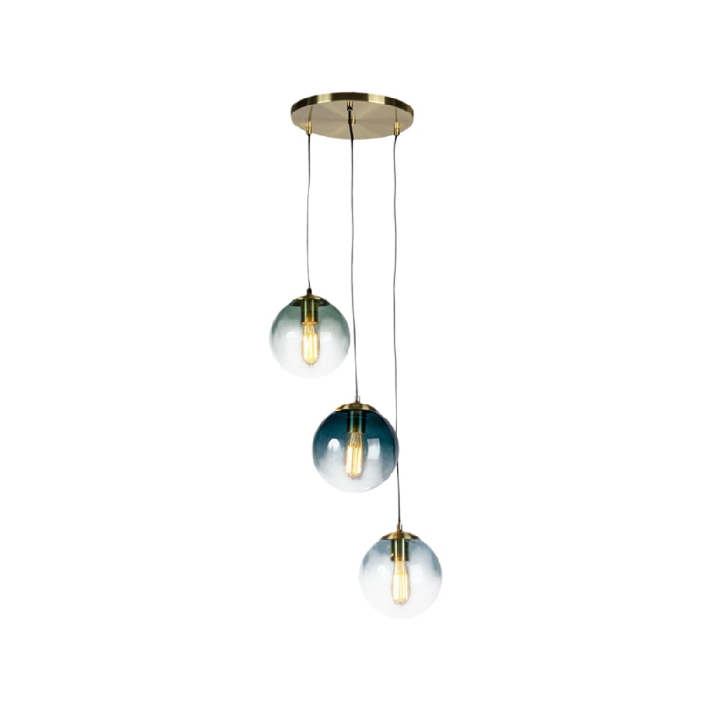 Suspension en verre soufflé - Trois globes dégradés avec finition dorée