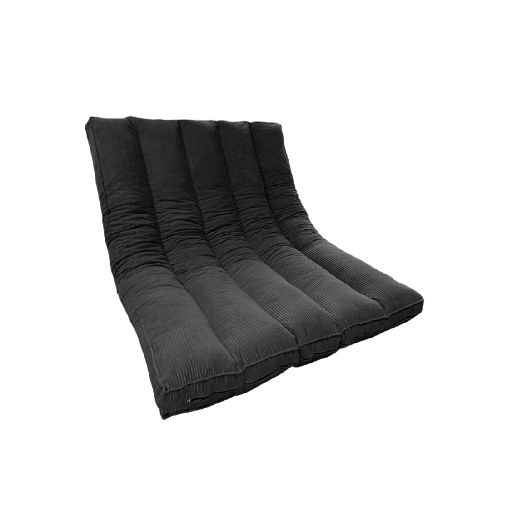 Coussin de chaise longue en velours noir, ergonomique et confortable.